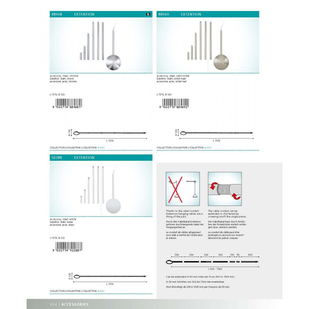 S pomočjo okrasnega kabelskega vodnika lahko montirate svetilko na točno določeno mesto. Svetilko lahko zamaknete za 30 do 150 cm.