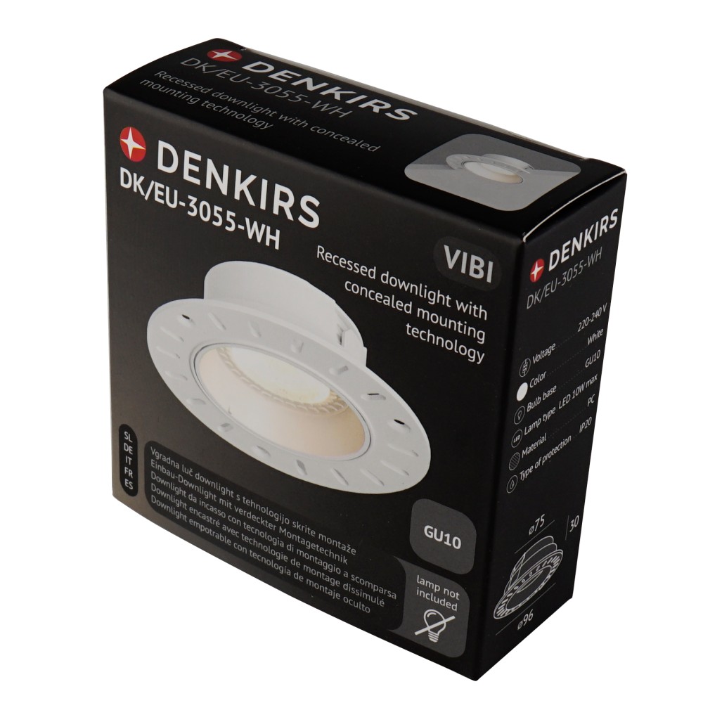 Vgradna svetilka "pod kitom" z zamenljivo žarnico. Prehod med ohišjem svetilke in stropom je popolnoma neopazen zaradi tehnologije skrite montaže. Vgrajeni vir svetlobe zagotavlja visoko raven vizualnega udobja in preprečuje slepeč učinek. Enostaven sistem zamenjave žarnice. Svetilke iz polimera se uporabljajo samo z LED viri svetlobe. Prepovedana je uporaba žarnic druge vrste.