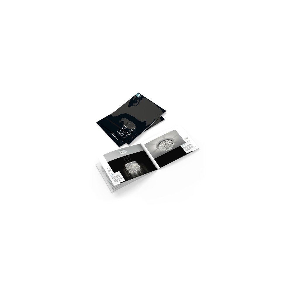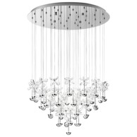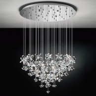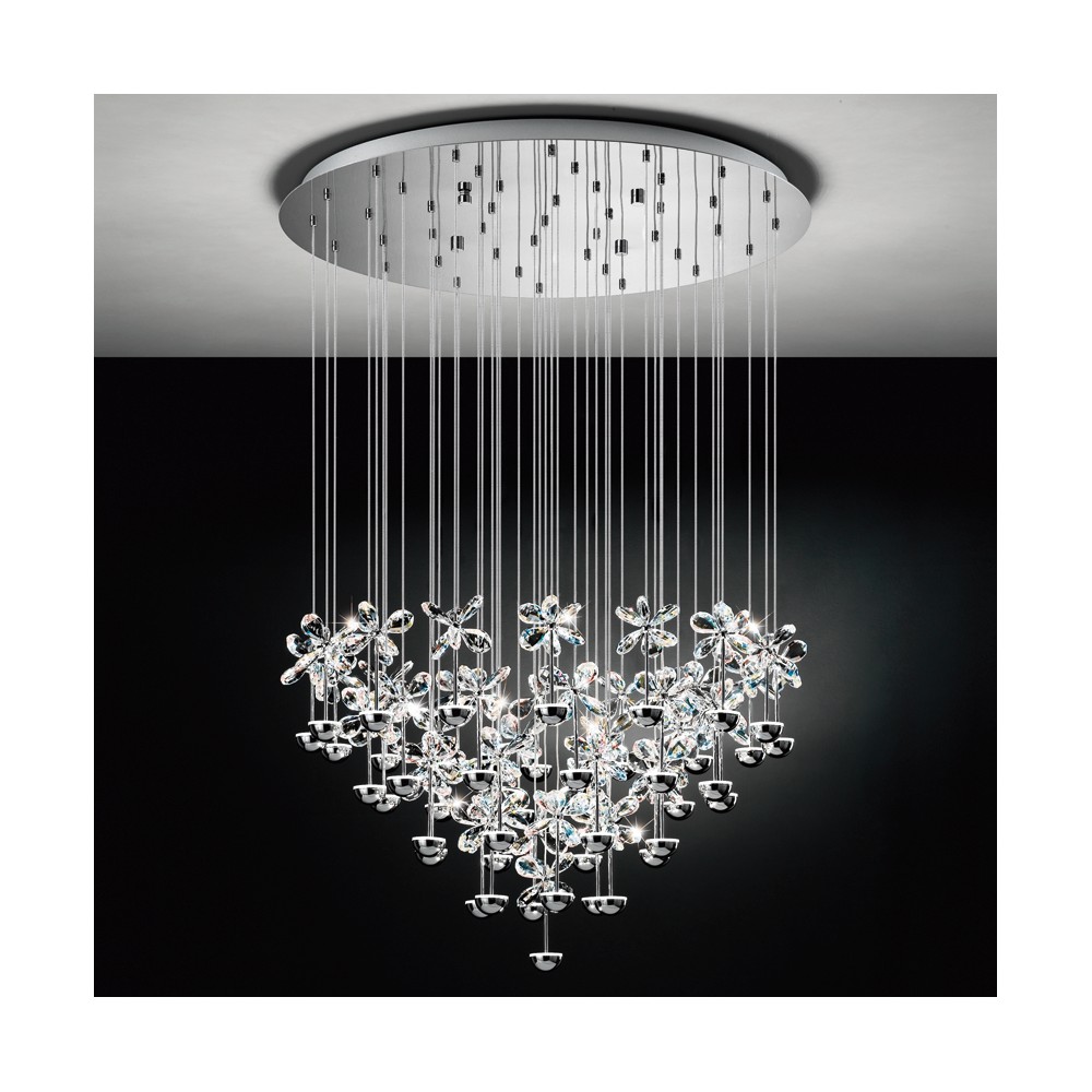 V enkratno kompozicijo sestavljeni drobni cvetovi iz kristalnega stekla. Vir svetlobe so v svetleče polkroge integrirani LED moduli.