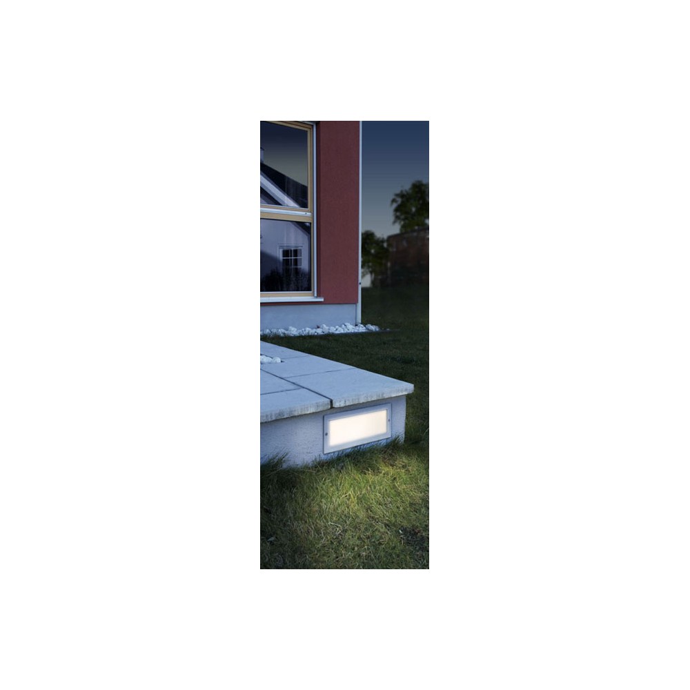 Eglo Zimba je zunanja vgradna svetilka narejena iz kvalitetnega aluminija in belega stekla. Primerna ja za vgradnjo v zid na hiši in v škarpe.
