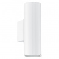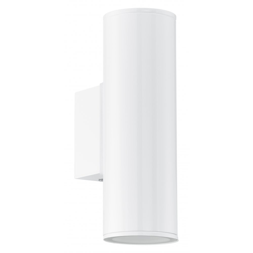 Eglo Riga zunanja stenska svetilka bele barve osvetli v snopu svetlobe steno hiše ali zidu.